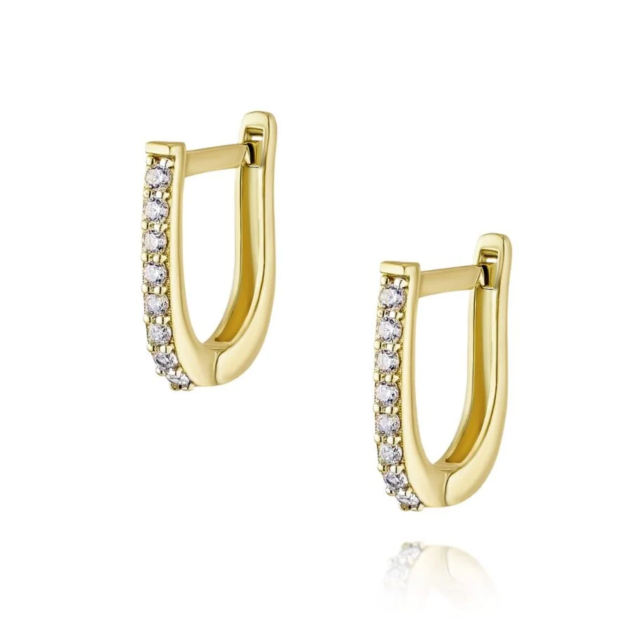 עגילי חישוק מזהב 14K בשילוב שיבוץ זרקונים