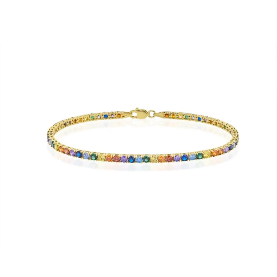צמיד טניס מזהב 14K משובץ זרקונים צבעוניים
